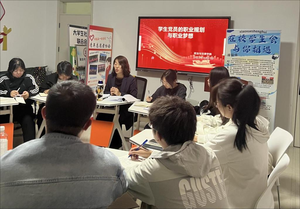 本次“一站式”学生社区发展学生党员的职业规划讨论会强化了学生党员骨干的理想信念教育,鼓励同学们在择业时选择与祖国同频共振,在扎根中成长,在砥砺中进步。(政治与法律学院)