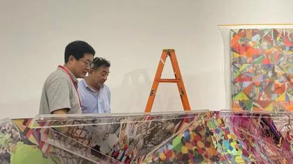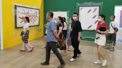 随后大家来到了成都市美术馆观看双年展。成都美术馆始建于1980年,作为中国最早的美术馆之一,集展览、收藏、研究、教育等功能于一体。馆址位于成都市区,建筑风格体现了现代艺术与创意的融合。外观简洁大方,线条流畅,采用大量玻璃和钢结构,具有很强的现代感。室内空间布局合理,展览空间宽敞明亮,为观众提供了舒适的观展环境。美术馆的双年展展示了成都乃至中国当代艺术的最新发展,这让视觉传达设计专业的学生对于艺术趋势有了更加全面的认识。多样化的艺术形式,如绘画、雕塑、装置等,也为学生们提供了丰富的灵感来源。