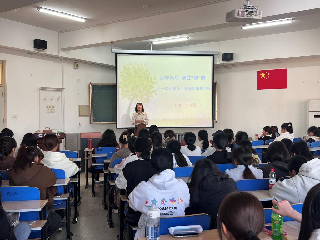 为增强2023级新生职业生涯规划意识,10月27日马克思主义学院邀请优秀校友李晓风开展职业生涯规划讲座,学工办主任李世光、2023级思想政治教育专业学生参加讲座。