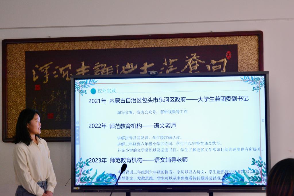 为了进一步提高我院学生职业生涯规划能力,帮助大学生树立发展目标、培养创新思维、提高核心竞争力,我院于11月3日在博学楼818教室举行职业生涯规划大赛。文学院副院长李欣、学工办负责人贺芬、白斯琴参加活动并担任评委。