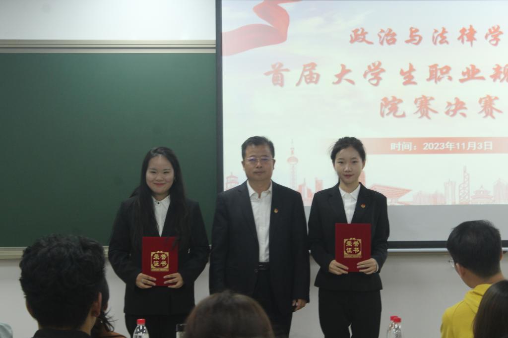 为了增强大学生生涯规划意识,提高大学生求职实践能力,促进大学生高质量充分就业,挖掘自身潜力实现自我价值。11月3日下午,政治与法律学院在九原校区综合楼203教室举办了政法学院首届大学生职业规划大赛院级决赛。学院党总支副书记郭宏升,学工办主任袁爱荣,辅导员白丽、赵鹏然担任本次比赛的评委。2023级部分同学在场观看了本次比赛。
