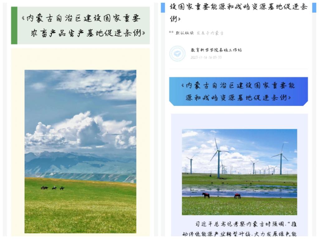 为了深入贯彻落实习近平总书记对内蒙古的重要指示精神,让同学们领会《内蒙古自治区全方位建设模范自治区促进条例》等六部促进条例精神并持续深入学习其精神实质。从11月13日起,教育科学学院开始针对自治区六部促进条例进行每日一篇新闻稿的宣传,致力于使学生深入了解并掌握此项重要条例。