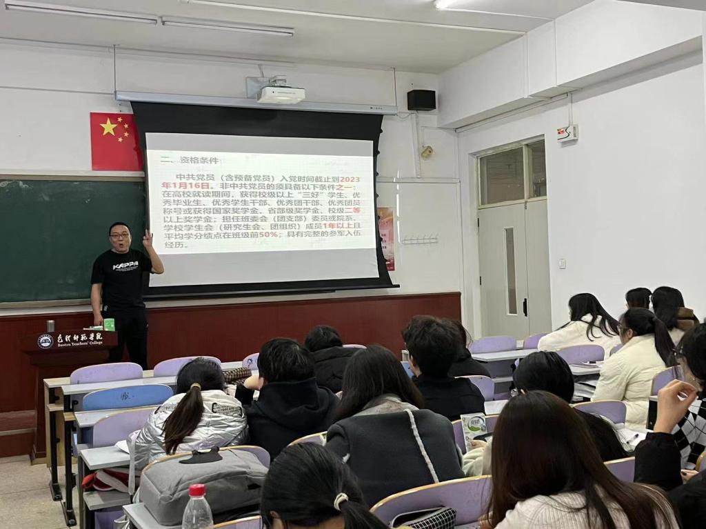 为了让学生们对研究生考试、公务员考试、英语四六级等相关信息和知识以及教师招聘考试面试等方面的方法技巧有更深入的了解,教育科学学院于11月16日在博东201和202分别为20级和21级各专业部分学生进行研究生考试、公务员考试、教师招聘考试结构化面试技巧及英语四六级考试等专题辅导讲座。