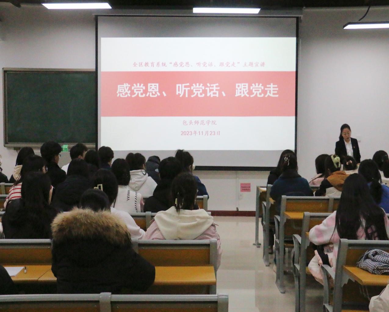 12月5日晚,在九原校区综合教学楼302,学院党总支书记李灵芝进行宣讲。