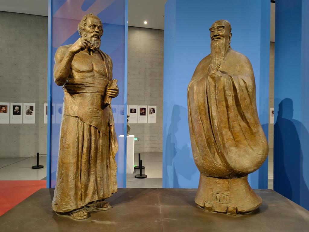 下午15:00,同学们来到呼和浩特雕塑艺术馆观展,艺术馆由依坡而建的下沉式建筑群构成。以“和平合作、开放包容、互学互鉴、互利共赢”为主题的首届呼和浩特国际雕塑艺术展,为同学们带来了极强的视觉冲击力和艺术感染力。展览坚持“以人民为中心”的创作导向,分“艺术经典、时代交响”“文明之境、映照相辉”“中华文化、博大和合”三个篇章,展陈了国内外经典雕塑作品58件,专项征集入围作品100件,既有《米洛斯的维纳斯》《思想者》等在世界雕塑史上具有里程碑意义的经典之作,也有吴为山馆长的《神遇——孔子与苏格拉底的对话》、《大草原》等享誉中外的经典之作,还有展现“北疆文化”、呼和浩特风土人情的获奖佳作,每一件都是艺术家的精神瑰宝。其中,直抵人心灵的《长征组雕》凝聚了当代雕塑家对革命先辈的无限崇敬,生动展现了长征故事,是新时代以艺术创作赓续红色文脉的壮丽史诗。
