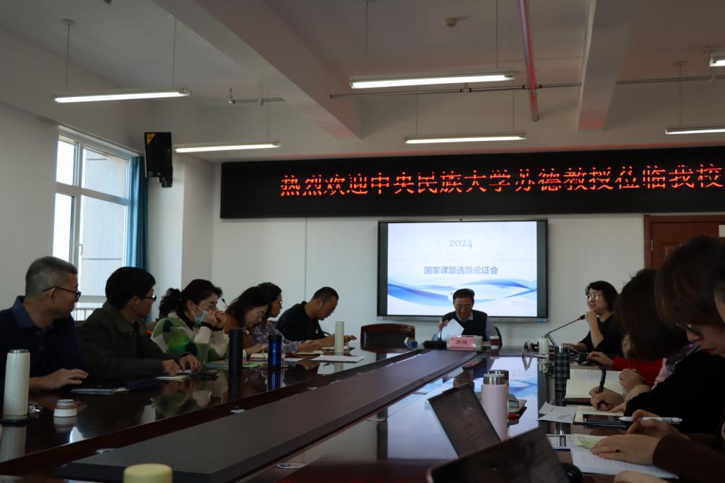 会上,苏德教授结合多年的国家社会科学基金课题与教育部课题评审经验,为准备申报2024年国家课题的我院教师进行了关于近年来国家课题的政策解读、热点解读、撰写课题申报书的详细讲解。苏德教授建议,选题要注意“两结合”:一是结合民族地区的特点与需求;二是结合前期研究成果。研究设计要注意研究方法上的规范与创新,对接学科前沿的方法变革。