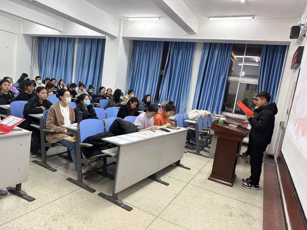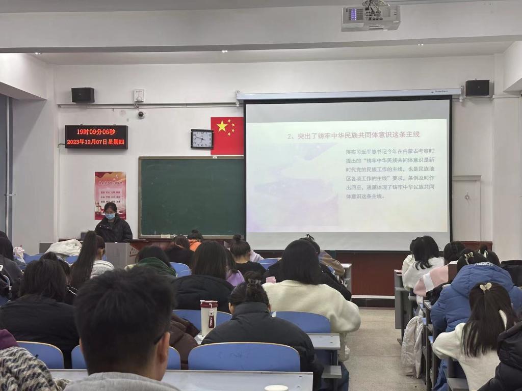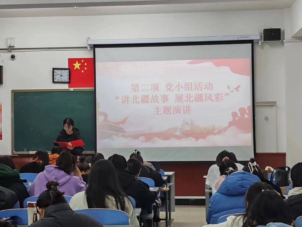 主题党日活动。12月7日,学生党支部举办了“讲北疆故事 展北疆风采”党日活动,共有58名学生党员参加。本次活动共有两项议程。首先,党员代表分别领学《内蒙古自治区全方位建设模范自治区促进条例》、《内蒙古自治区筑牢祖国北疆安全稳定屏障促进条例》和《内蒙古自治区建设我国北方重要生态安全屏障促进条例》。随后,全体党员以党小组为单位,以“讲北疆故事 展北疆风采”为主题开展演讲,有的同学通过讲述蒙古马精神来呼吁同学们在做事时要吃苦耐劳、一往无前;有的同学结合自己的自身经历讲述了北疆治理水土流失、沙漠化等环境问题中孕育的“三北精神”,号召同学们要勇于挑战、开拓创新;还有的同学从不同的方面阐述了草原文化,如草原文化对现代生态文明建设的启示,表达了强烈的爱国主义精神、开拓进取、创新发展的时代精神。
