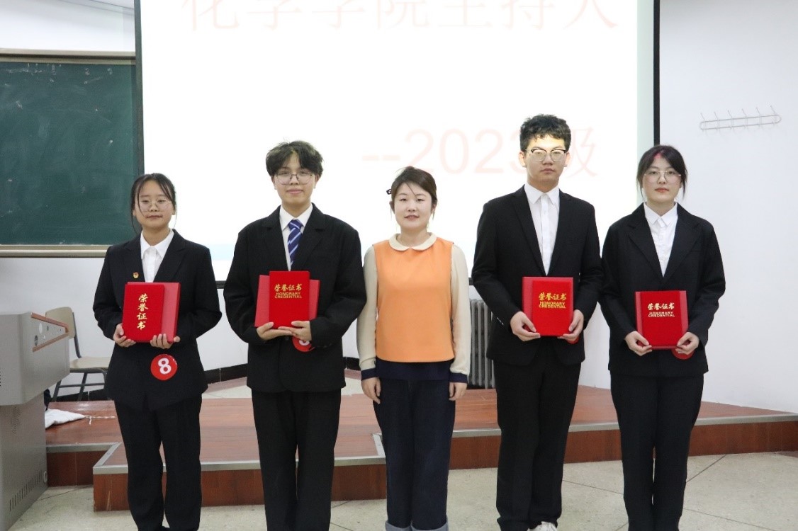 本次大赛包括如下三个环节:“随机应变秀”、“如何应对突发情况”、“搭档主持也在行”。在场激烈的竞争比赛中,选手们勇于挑战、展现自我,用不同的表达方式展现着自己的风采。经过了激烈的角逐,最终有四名选手被评为2023级化学学院主持人,分别是郭怀硕、周致默、姜春苗、赵锦琳。
