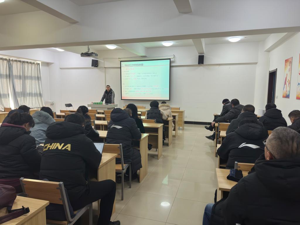 12月21日,体育学院全体教师在体育馆多媒体教室举行了2024届毕业生论文工作的专项培训活动。夏雪芹结合PPT,对本届毕业生论文工作的实际情况、近年来论文指导过程中普遍存在的问题以及论文工作中需重点关注的事项进行了详尽阐述。同时,夏雪芹说明了此次论文工作的重要性,这不仅是对学生人才培养质量的关键体现环节,同时也是明年师范专业认证和新一轮审核评估的关键支撑材料。希望老师们高度重视,严谨指导,确保各项工作有序推进,以彰显体育学院的专业素养与教学质量。