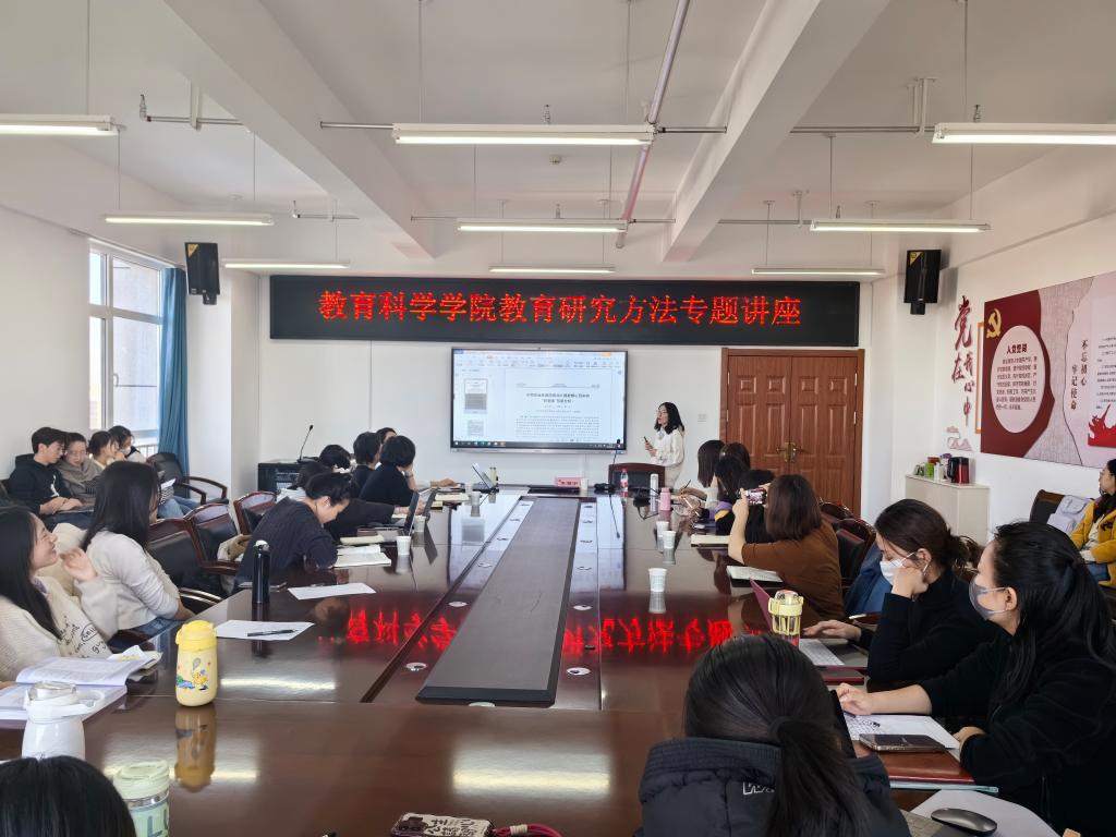 2024年1月4日上午,教育科学学院邀请内蒙古师范大学李雅宁博士作题为《基于扎根理论的访谈法操作及其统计分析》的学术讲座。讲座由学科建设办教学秘书郑淑清主持,教育科学学院全体研究生和部分教师参加了讲座。