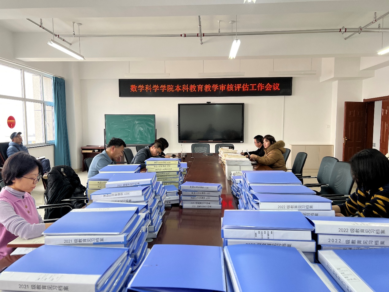 王丽花副院长根据学校审核评估工作的任务安排和工作要求,结合学校上学期开展的教学检查布置了学院近期的工作任务。具体内容包括:按照试卷自查表要求核查近3年的试卷(包括两学期线上试卷),核查上学期所有课程的达成度报告、过程性材料和相关表格,以及提高学院数学与应用数学专业教学案例库的使用率。徐国明院长强调我院审核评估工作时间紧、任务重,全体教师应明确各自任务,认真积极准备,扎实有效完成各项工作。会后全体教师按照教研室分组对近三年的试卷进行了核查,并定于本周内对其他各项内容逐一核查。