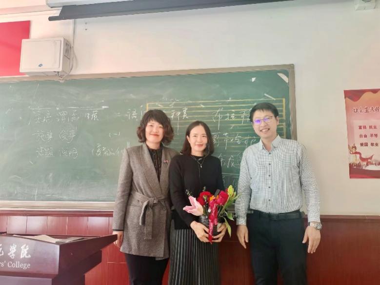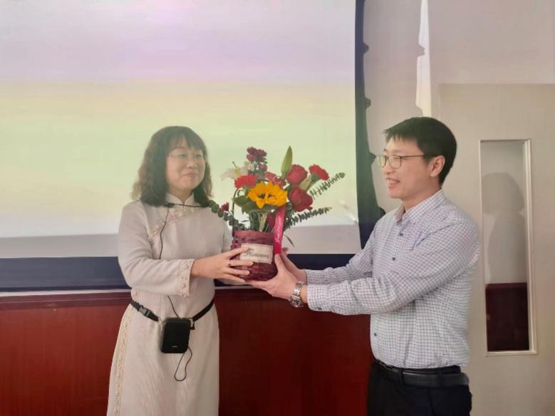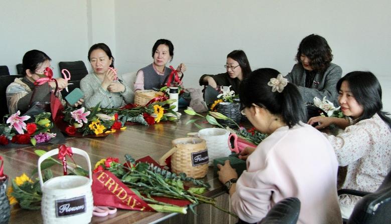 活动在轻松愉快的氛围中展开,花艺师围绕不同花材为老师们讲解基础的插花艺术与技巧,并现场教授插花技艺。老师们以饱满的热情投入到插花创作之中,充分发挥自己的想象,用灵巧的双手、无限的耐心,为一枝枝花材修剪形状、设计造型,并根据色彩进行搭配,在馥郁花香中感悟取舍之道、领悟古典之美,制作出了一盆盆形态各异、娇艳欲滴,象征着祝福与美好的插花作品。最后,敖日布书记、李国德院长以及贾舒副院长、李欣副院长为正在教室辛勤耕耘的女老师们送上节日花篮和节日祝福,通过一盆盆美丽的花卉传递了美好与祝福。