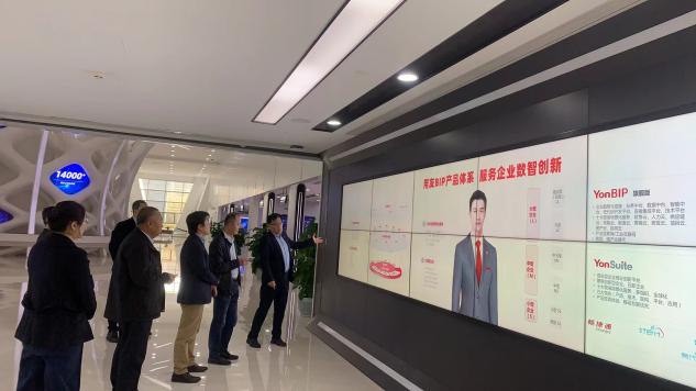 调研组一行参观了北京用友数智企业体验馆,深入了解用友的数字化、智能化服务。围绕企业数智化发展的需求,结合体验馆中金融、教育、政务、制造、建筑、能源、医疗等行业应用场景的展示,了解了当前用友集团在数字经济背景下开发的“数字金融”“数字财务”“数字教育”“数字制造”“数字能源”等数字化服务项目,亲身体验了企业数字化的最佳模式和升级路径。