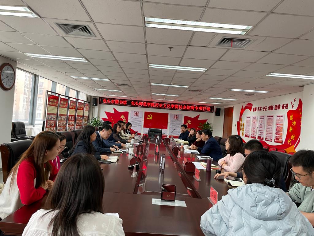 此次调研旨在深化与包头市图书馆的合作关系,共同探索新的就业岗位,并进一步推动产学研用的深度融合。包头市图书馆党支部书记、馆长王立新、副馆长武咏梅及各科室主任和图书馆学专业优秀毕业生出席调研活动。