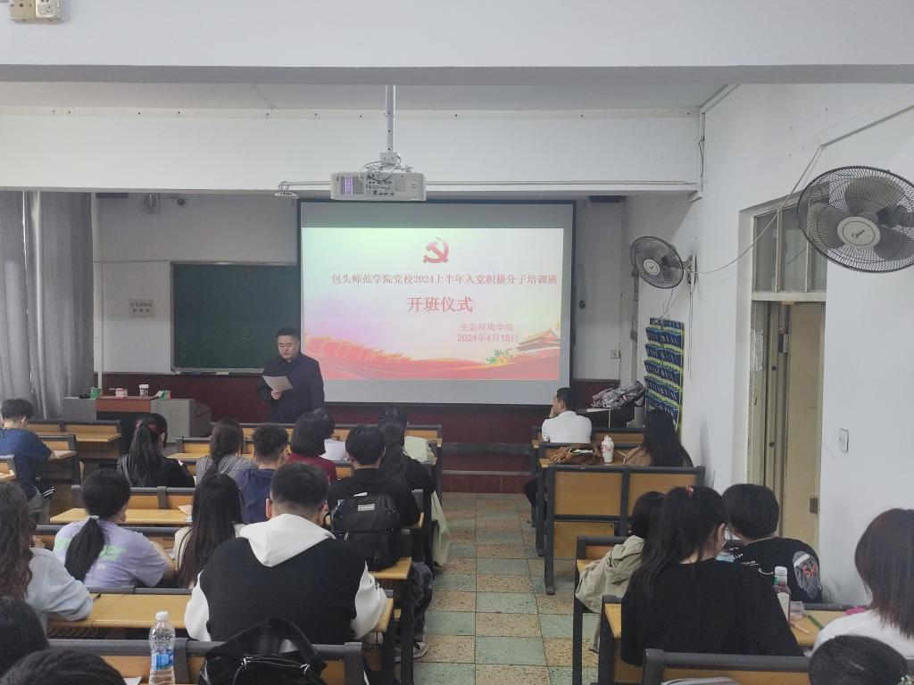 为深入学习贯彻习近平新时代中国特色社会主义思想,提升党校教育培养质量,做好院系入党积极分子教育培养工作,生态环境学院于4月18日,在齐志楼201举办了入党积极分子培训班开班仪式,学院党总支副书记刘一峰、组织员王猛、全体第48期入党积极分子参加。