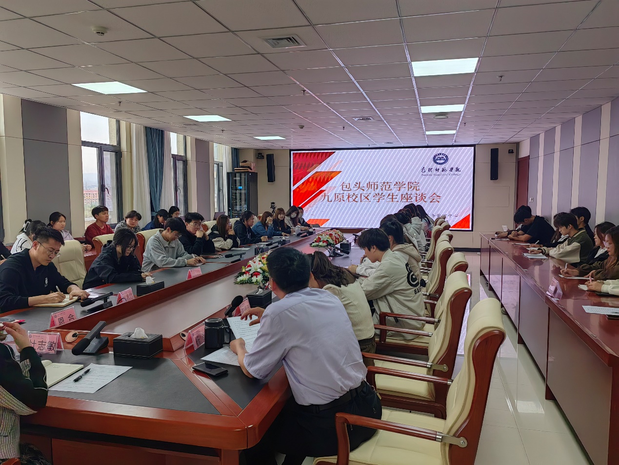 为进一步增强服务师生意识,提升九原校区学生生活、学习环境,保障学生人身财产安全。2024年4月28日下午,综合管理服务中心在九原校区综合教学楼706会议室召开了学生座谈会,参会人员有综合管理服务中心主任杜志敏、副主任杨尚,安全保卫处副处长恩合,政治与法律学院辅导员赵鹏然、经济与管理学院辅导员陈丽芳、以及两学院的学生代表。
