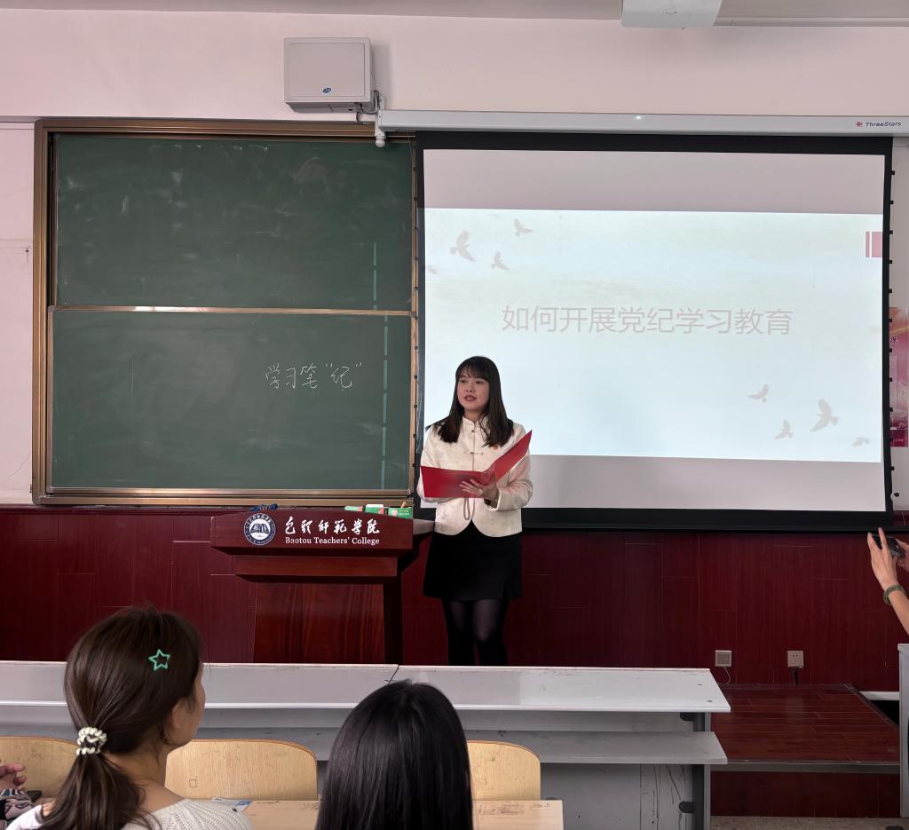 为深入学习贯彻习近平总书记关于党纪学习教育的重要论述和重要指示精神,进一步加强对支部党员的思想引领,提升其学习党章党规及党的最新指导思想的能力,4月25日,教育科学学院学生一党支部开展了“学党规党纪 守纪律底线”专题学习,会议由支部书记王璐然主持,全体党员参加。