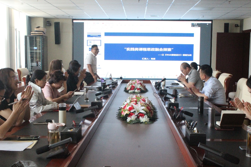 5月9日,政治与法律学院和教师教育学院(教师发展中心)在九原校区706会议室联合举办了教学进阶系列线讲座,本次讲座采取线上线下同步进行。特邀我校信息科学与技术学院陈超老师担任主讲嘉宾,他以“实践类课程思政融合探索——以《Web前端设计》课程为例”为主题,分享了如何将思想政治教育与实践类课程紧密结合的宝贵经验。政治与法律学院副院长魏成主持,相关课程教师参与。