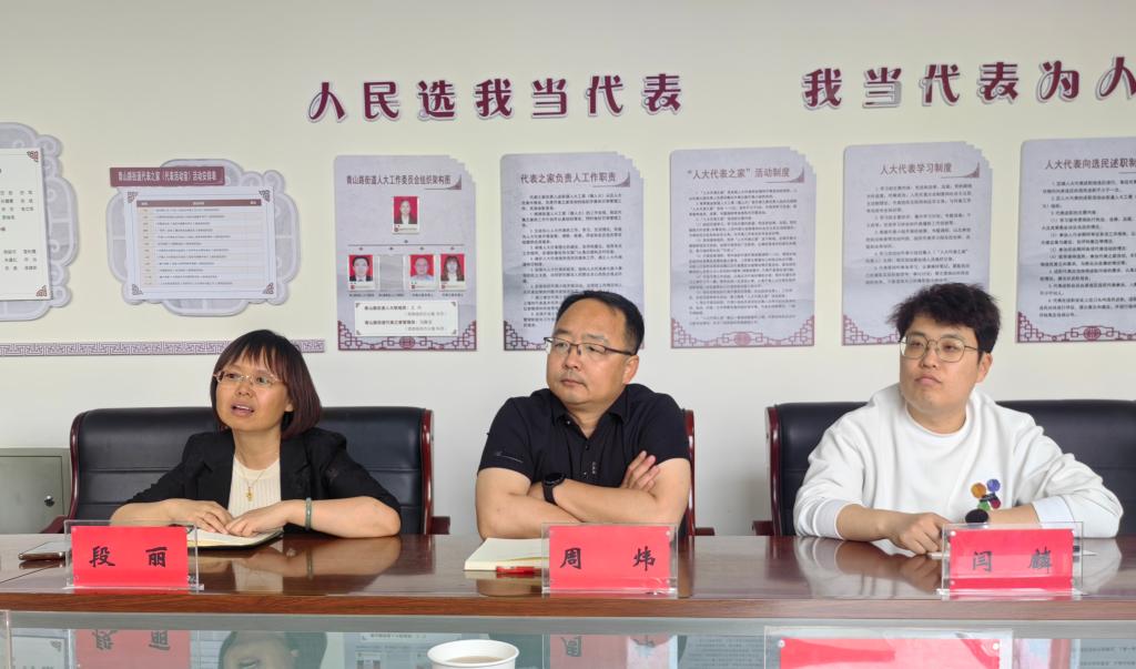 座谈会上,孙傲彪介绍了学院的基本情况、专业特色以及近年来人才培养、科研研究、社会治理和服务等方面取得的成果。在党建引领下产教研融合发展,依托现有的学科资源,紧密结合地方,跟社会组织有效对接,找到校社合作的典型,从而推广产教研融合发展的理念。同时对学生深入社区开展研习见习、实习实践等方面的工作交换了意见。青山路街道党工委书记段丽详细介绍了办事处的发展特色、服务项目、典型示范社区以及未来发展规划。办事处主任周炜对社区工作者的考录、待遇及个人发展规划做了详细的解说,希望社会工作专业毕业生到社区服务发展。双方就社区特色发展、专业人才培养需求以及校社合作模式等议题进行了深入的交流和探讨。