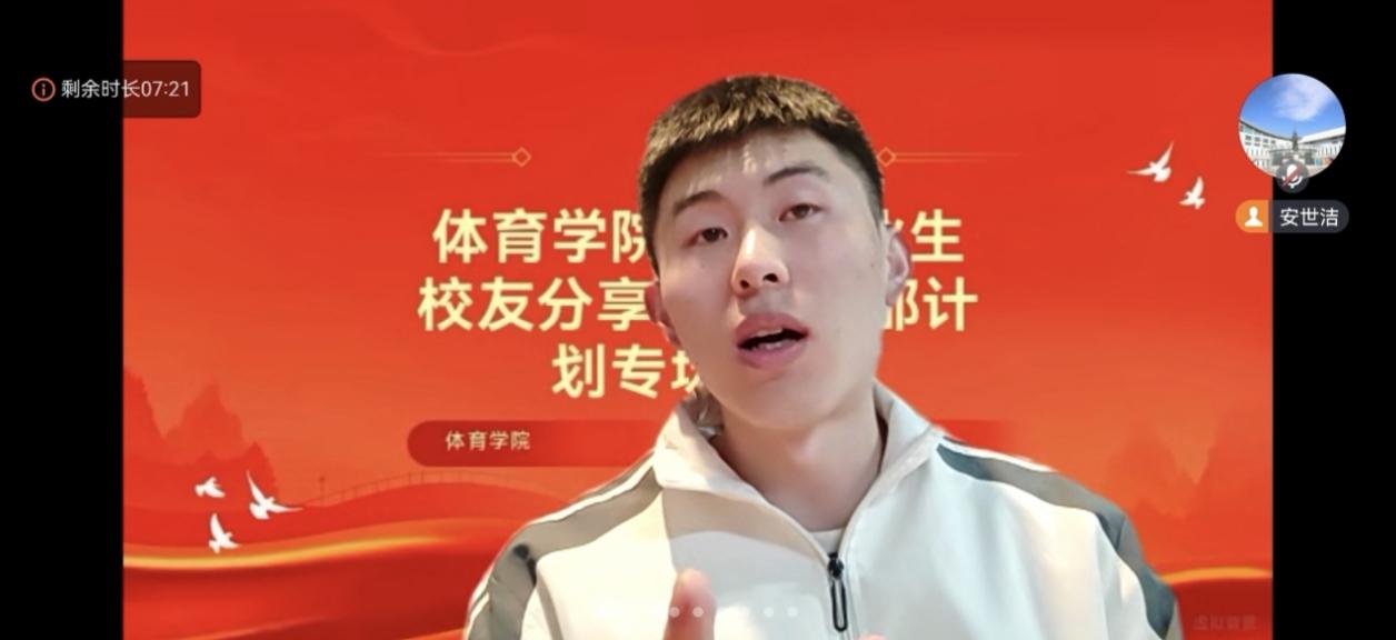 “到西部去,到基层去,到祖国最需要的地方去。”体育学院西部计划线上宣讲会圆满落幕。在国家的号召下,体育学院积极响应,为进一步引导和鼓励高校毕业生走向基层、扎根乡村,主动融入国家发展大局,积极投身乡村振兴的伟大事业,于5月13日举办了线上西部计划专场宣讲会。