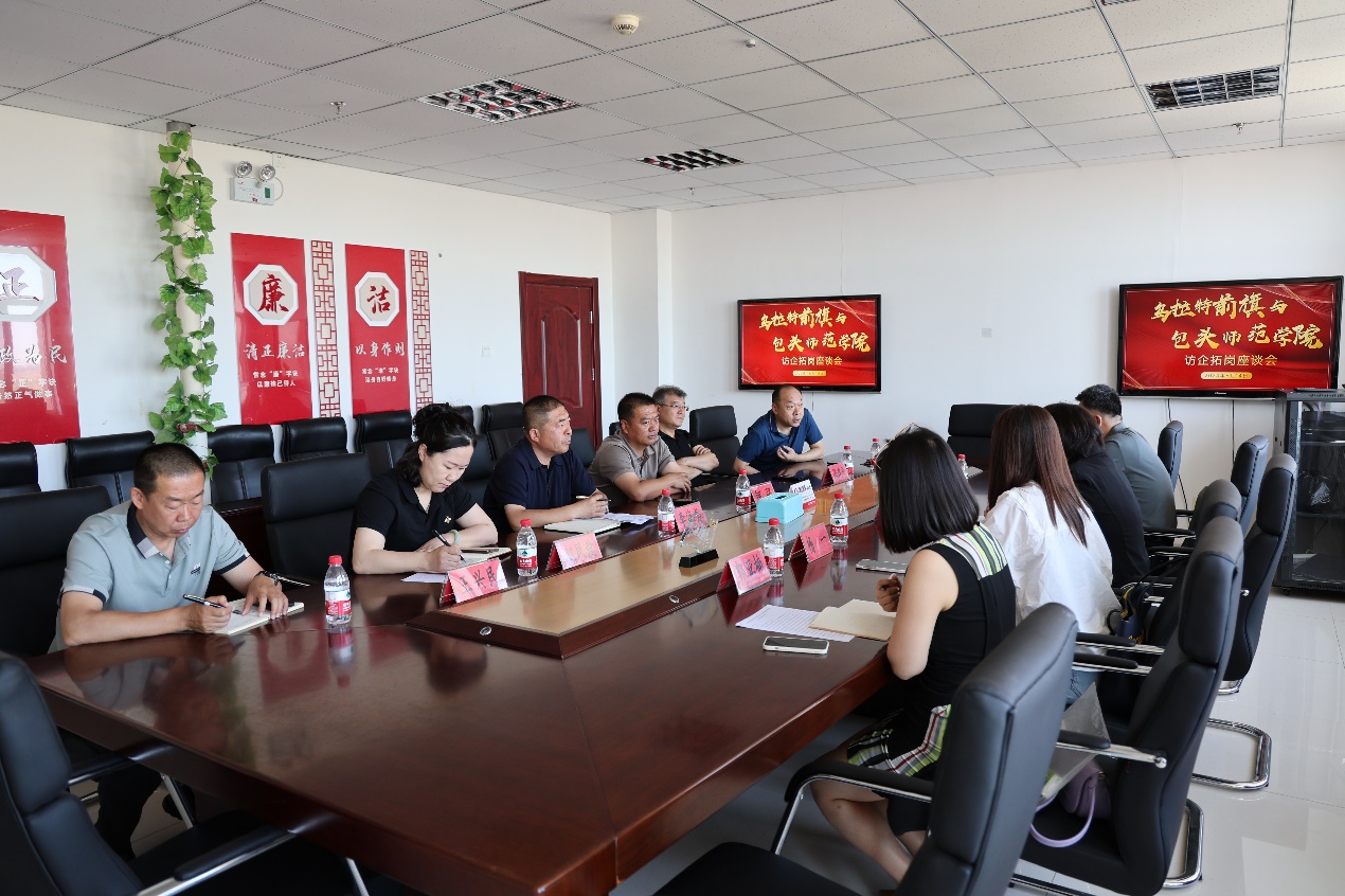 为了进一步优化人才培养模式,为毕业生争取更多就业机会,6月14日上午,数学科学学院党总支书记姜雪、应用统计学系主任郭鹏云、实践教学研究部主任杨一、学生工作办公室负责人郭亚楠前往乌拉特前旗访企拓岗。乌拉特前旗旗委常委、副旗长巴音毕力格携教育局、统计局相关领导出席了座谈交流活动。