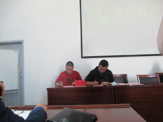 会上学院全面从严治党责任人与领导班子成员签订了全面从严治党责任状,分管领导与各教学系部主任,学院办公室、学生工作办公室、场地与器材管理办公室等负责人签订了全面从严治党责任状。