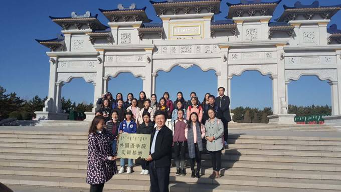 11月4日上午,外国语学院党总支书记吴建钢与翻译系主任赵阿茹娜带领2015级翻译系全体学生到成吉思汗陵进行实践学习,并举行了外国语学院实训基地揭牌仪式。成陵管委会负责人娜仁同志出席了会议。