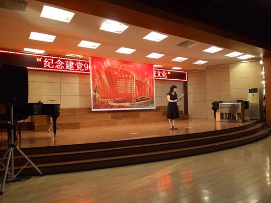 7月1日晚,音乐学院、资源与环境学院在音乐学院博艺厅联合举办“庆祝建党96周年、弘扬中国传统文化”特色党日活动。本次活动由“高唱国歌”、“重温入党誓词”、“观赏中国传统音乐教学团队《中国民族民间音乐》重点课程教学成果展演”三个部分组成。活动由音乐学院党总支书记李红梅主持。