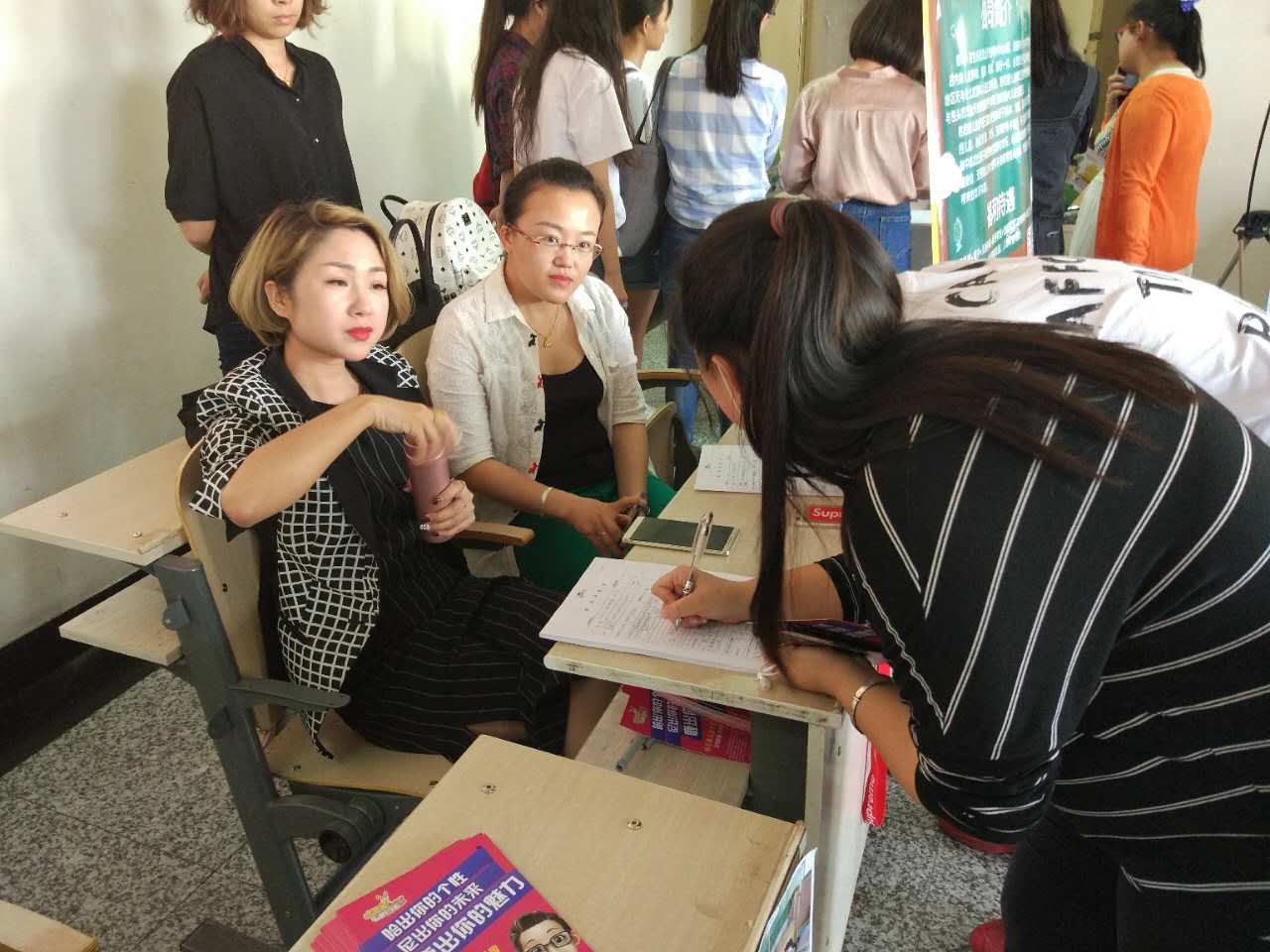 之后,在教室外门厅招聘现场,同学们分别与各用人单位进行洽谈,并投递精心准备的个人简历,现场气氛热烈,部分达成合作意向的学生与企业在现场就签订了初步就业协议。各用人单位也表示对本次双选洽谈会的效果感到满意,愿意与学校建立长期的合作关系。 (教育科学学院)