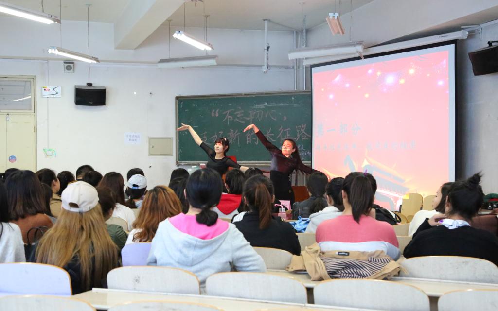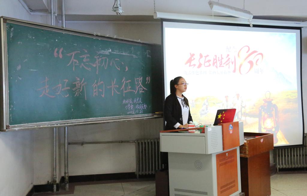 10月21日下午,为纪念中国红军长征胜利80年,本团支部开展了以“不忘初心,走好新的长征路”为主题的团日活动,特邀请校团委“驻校蹲班”指导老师刘国庆及教育科学学院团总支书记方丽慧老师深入活动现场观摩指导。活动开始后,同学们用饱满的热情,通过舞蹈、歌曲、朗诵,相声、小品等形式,讴歌伟大的长征精神,表达了对中国共产党人和人民军队的敬佩之情以及响应以习近平总书记的对青年的期望和号召,永远跟党走,“不忘初心,走好新的长征路!”的坚定信念和决心。 (教育科学学院)