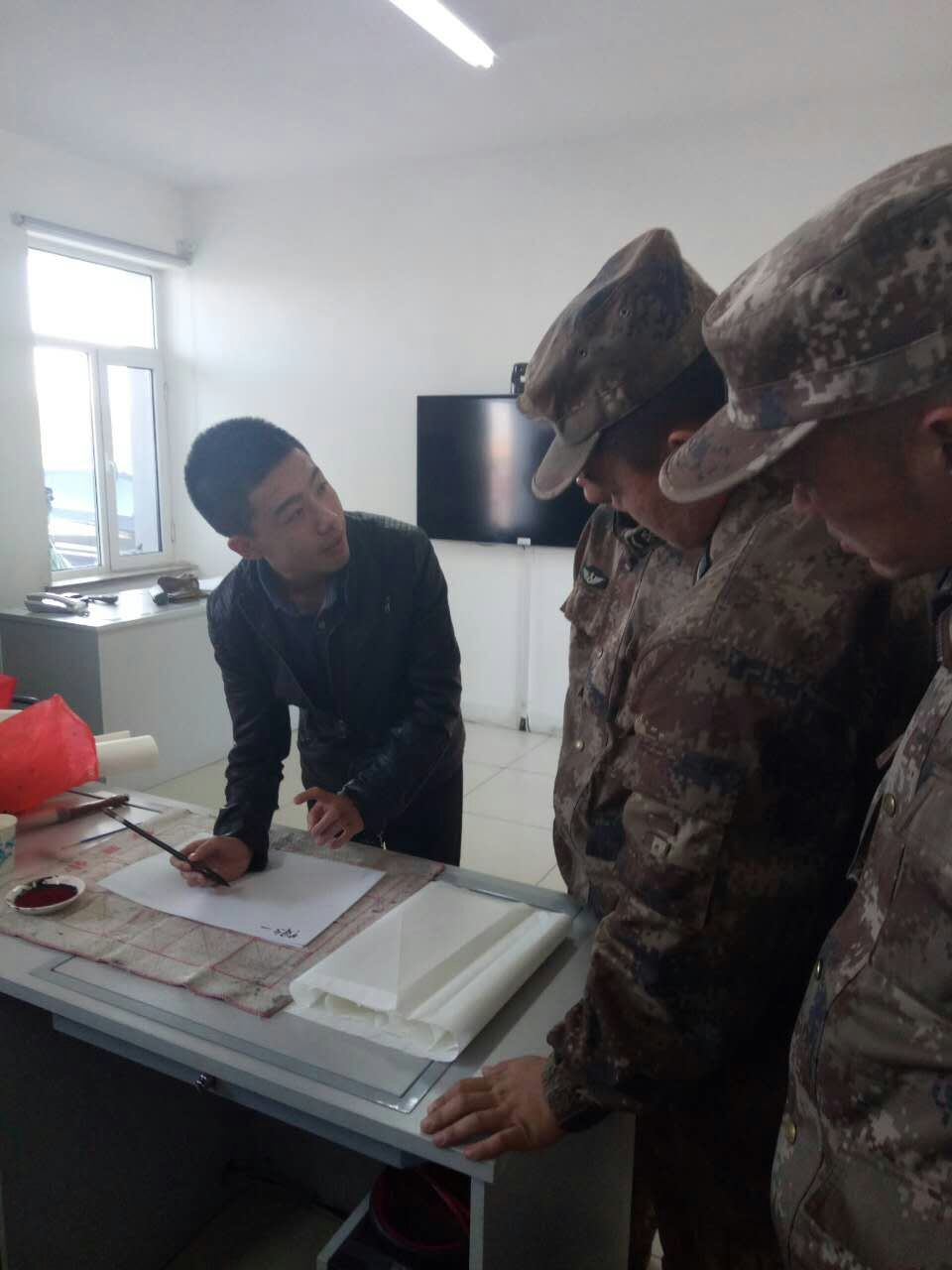 10月17日至18日,美术学院党总支书记李慧龙老师及苏杰明教授带领由三位老师和七名学生,一行十二人组成的志愿服务队,赴满都拉边防三支队进行拥军活动。