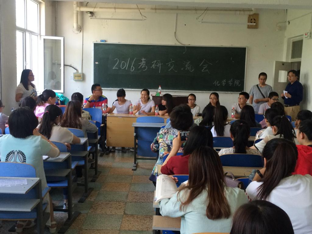 5月30日至6月2日,化学学院以班级为单位举办了4场考研交流会,学院领导冯丽和学工办主任韩泽红、各班班主任到现场进行观摩指导,非毕业班同学参加了各场次交流。