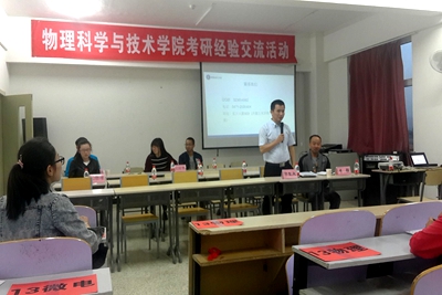 为进一步加强同学们对研究生入学考试的认识,了解前沿的就业形势,物理学院于5月5日晚举办了“努力拼搏,放飞考研梦想;激情飞扬,彰显青春魅力”考研经验交流会。交流会邀请郭凯敏老师、李强老师以及五位今年以优异成绩考上研究生的优秀毕业生为同学们答疑解惑。