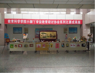 为了加强学前教育专业学生的专业技能训练,激发同学们的创作热情,值此教育科学学院学前教育专业建专业10周年之际,教育科学学院在博学楼大厅举办了两场学前教育专业学生作品展。
