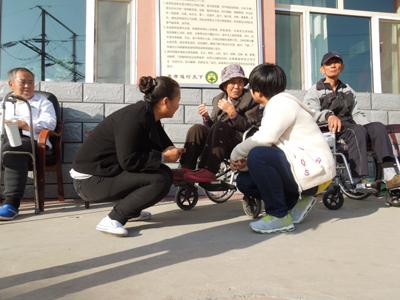 10月30日,美术学院志愿者协会成员来到惠德养老院看望老人,惠德养老院老人平均年龄超过65岁,其中年龄最大的一位有85岁高龄。志愿者们分成两组,一组负责布置表演会场,一组跟老人们聊天散步。分工完毕后,同学们各忙各的,老人们也笑逐颜开,与同学们聊了起来,大院里充满了欢声笑语。