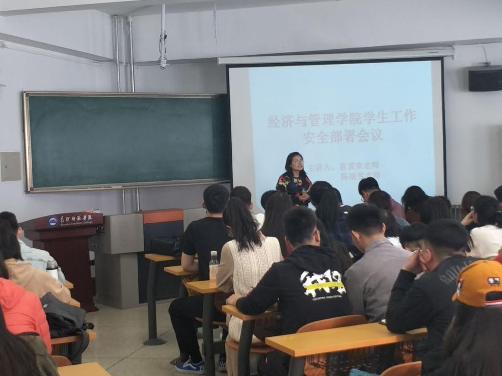3月14日下午,经济与管理学院在博学楼东104召开学生工作安全部署会议。会议由辅导员陈丽芳主持,经管学院全体学生干部参会。