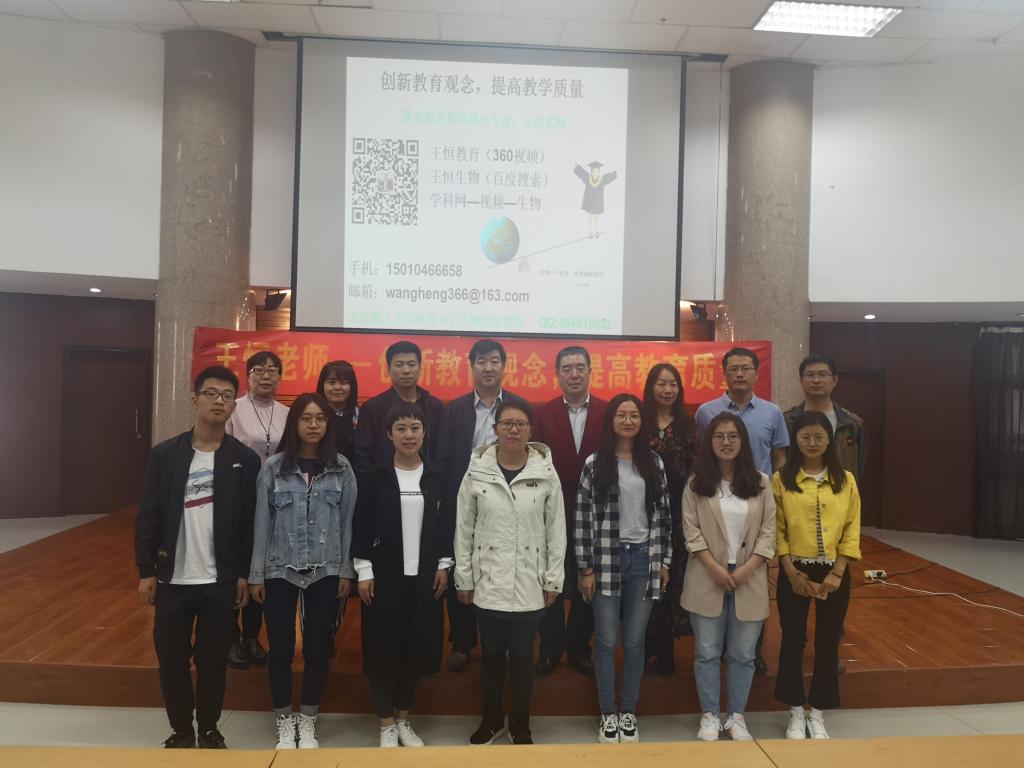 生物学院高度重视本次讲座,党总支书记纪小丽与院长刘晓光及全体师生聆听了讲座。王恒老师首先向大家阐述了自己的观点,即理念决定一切,策略决定成败,思想决定出路,方法决定效果。并就一下几个方面与大家做了探讨:在当前形势下,如何教育好学生,提高教育质量,使同学们成为具有扎实文化基础和较强综合能力的高素质人才,增强同学们竞争和发展能力;传统的教学模式、培养方案已经不能适应当今社会的发展,学校必须进一步明确培养目标和教学的基本要求,学生是学习的主人,更是发展的主体,学生的学习过程就是探求新知、学会做人、学会合作的过程;教师不再是知识填鸭式的灌输者,不再是传道授业解惑的唯一执行者,而更多的是学生成长道路上的引路者、激励者和帮助者。最后,王恒老师给出的最终解决方案,就是要不断培养和激发学生的学习兴趣,以此来引导学生主动学习,让学生成为学习的主人。“星星之火,可以燎原”,王恒老师强调,创新的激情一旦被点燃,将会迸发出无限生机与活力。