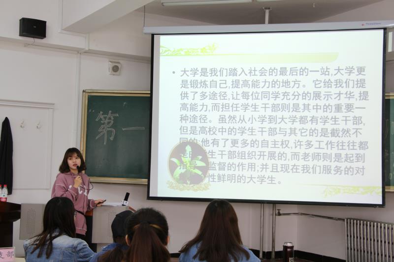 在“学生干部素质培养与能力提升”讲座中,王璐然老师分别从学生干部的基本礼仪、基本素质、基本意识、基本能力和应处理好的若干关系方面进行深入浅出地讲解,强调学生干部要以身作则,提高工作执行力,不断完善自身能力,带动更多同学融入班级和学院工作中。