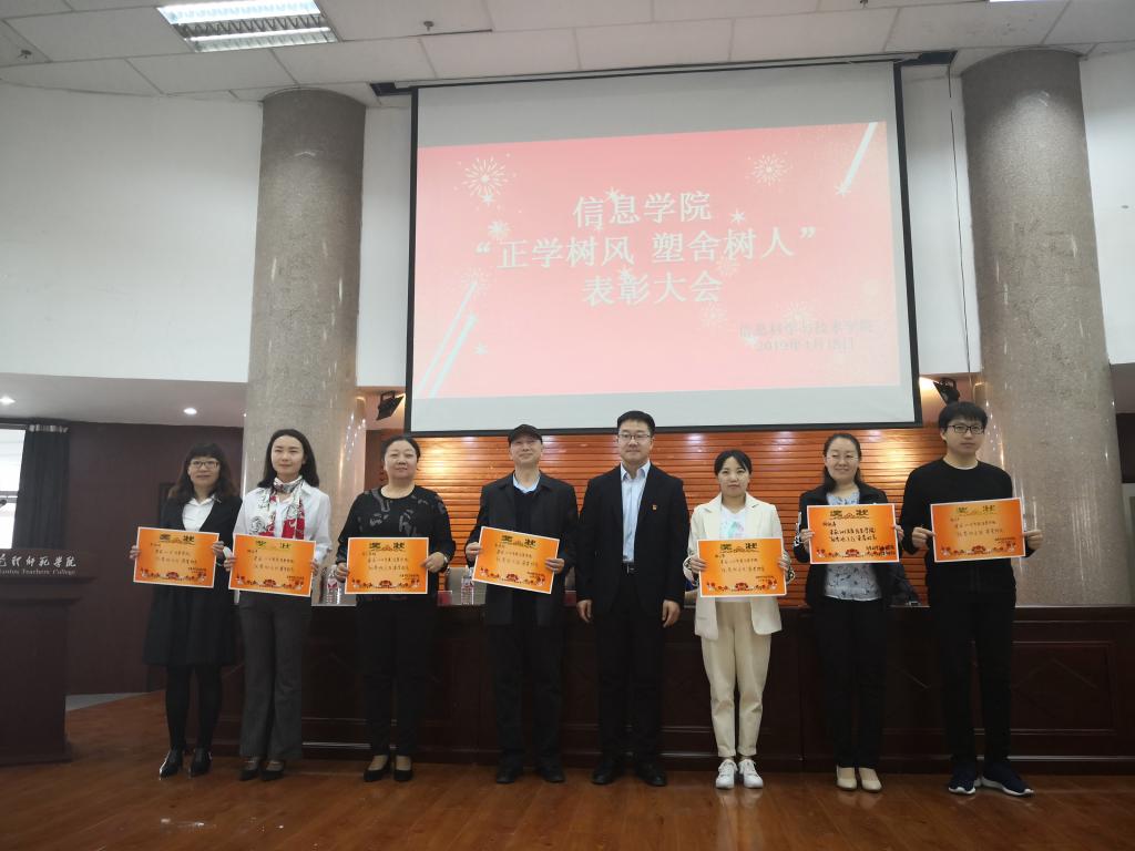 为了深入贯彻落实学校学生工作委员会《关于大学生思想政治领航计划的实施意见》、《“打造公寓文化,创造优良学风”正学树风计划实施方案》,不断推进学风、院风、班风建设,4月18日下午,信息学院在学术报告厅召开了“正学树风 塑舍树人” 表彰大会。学生工作部副部长郭志峰、信息学院党总支书记周汉忠、院长马占飞出席了会议,全体班主任、辅导员、大一大二全体学生、大三部分学生代表参加了会议。会议由副书记副院长郭宏升主持。