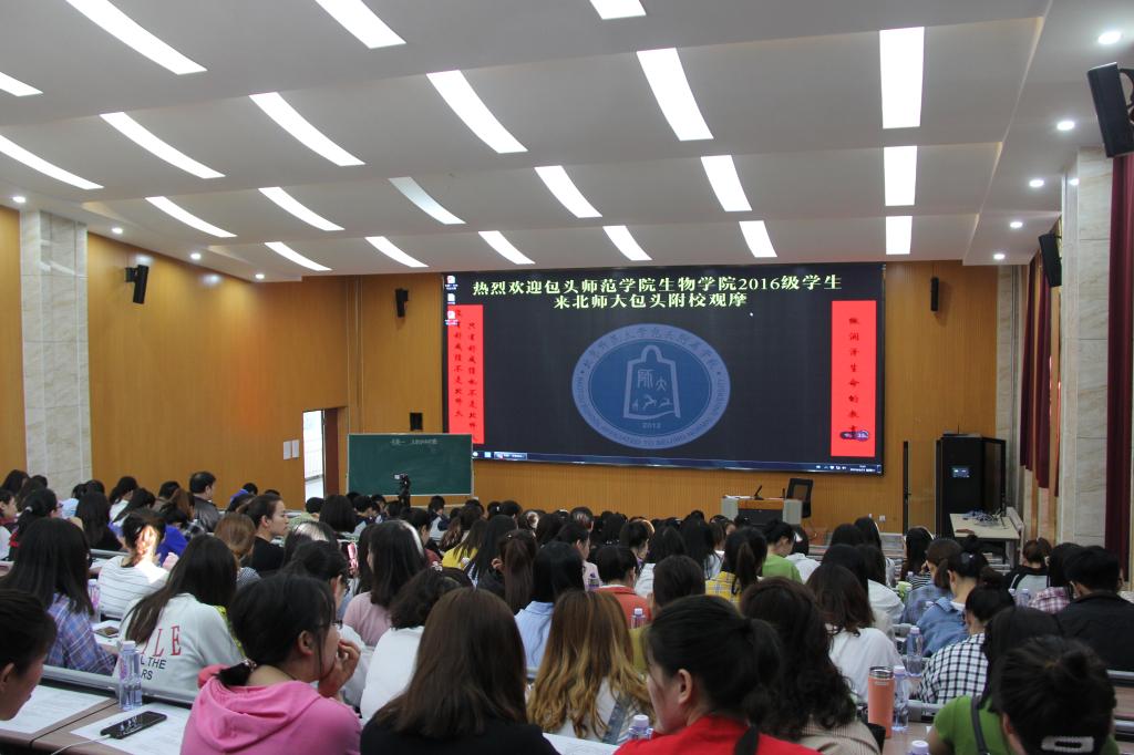 4月23日,由生物科学与技术学院院长刘晓光院长、李培欣副院长副书记带队,学院9名生物科学专业教师和100多名2016级师范专业学生参加北京师范大学包头附属中学同课异构教学观摩与研讨活动。