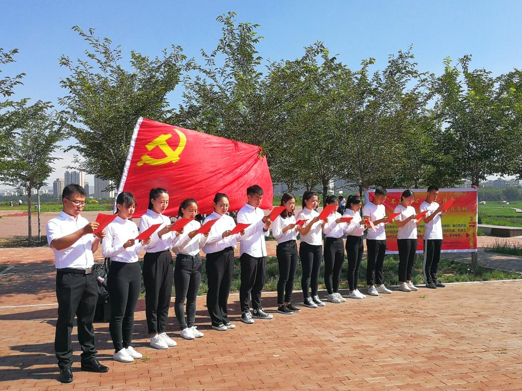 第三项议程举行新党员入党宣誓和老党员重温入党誓词。朱丽同志领誓,全体党员列队,面向党旗庄严宣誓,重温入党誓词,充分表达了学院院全体党员“不忘初心、牢记使命”的坚定信念。