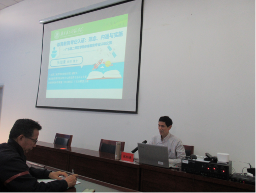 张细谦教授结合广东第二师范学院体育学院自身师范类认证工作实际,对课程教学大纲制定、组织学生专业技能培训等方面工作实施进行了讲述。