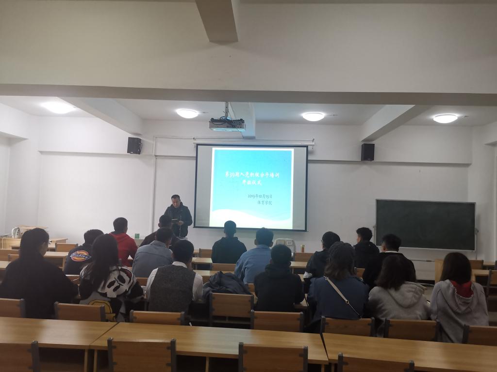 10月19日、20日,体育学院举办了第39期入党积极分子培训班,通过党课集中学习和观看录像、社会实践、自学等形式组织积极分子学习党的基本理论和基本知识。培训班总课时数43课时,参加培训人员21人。