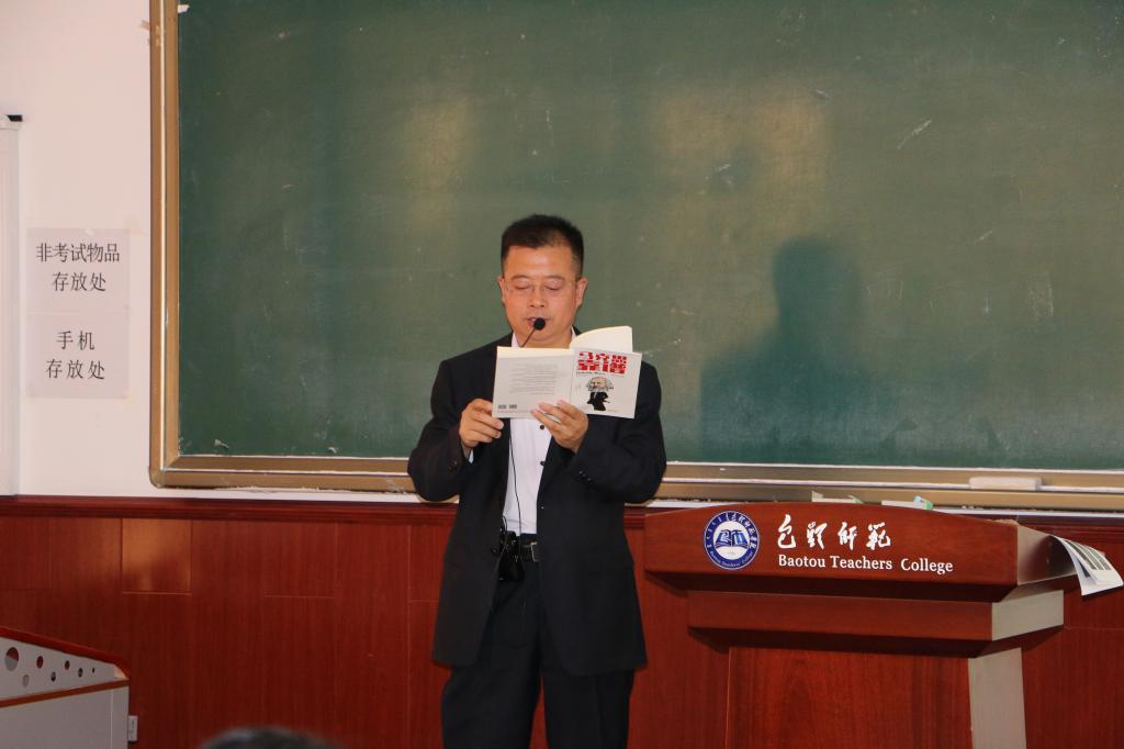 郭宏升老师首先就共产党的初心和使命与在场的同学进行了互动,强调共产党人想要实现自己的初心和使命,就要牢记党的指导思想。他分别从党的指导思想的极端重要性、完整表述、主要内容及其魅力以及如何正确对待党的指导思想这四个方面做了深入浅出的讲解。讲课过程中,他选用典型的案例、积极向上的歌曲传达了党的指导思想的重要性及其魅力,向同学们推荐了《共产党宣言》、《马克思靠谱》、《党章》、《毛泽东诗词史诗论》、《毛泽东用兵真如神》等书籍,并声情并茂的朗读了其中的几个段落,令同学们心潮澎湃。