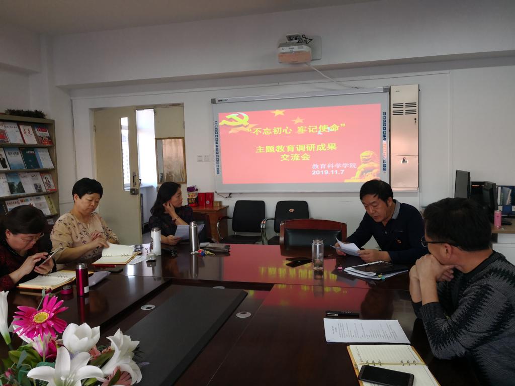 11月7日下午,根据学校“不忘初心,牢记使命”主题教育的工作安排,教育科学学院召开领导班子成员主题教育调研成果交流会,学院领导及学院中心组成员参加了研讨会。