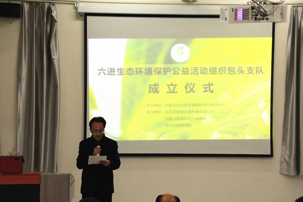 为了宣传环保理念,普及环保知识,提升环保意识,化学学院于11月28日下午在新逸夫楼124举行了“六进生态环境保护公益活动组织包头支队”成立仪式。内蒙古环保科技行业协会会长韩玉超、副会长王宁和化学学院领导及2017、2018级的环保志愿者参加了此项活动。