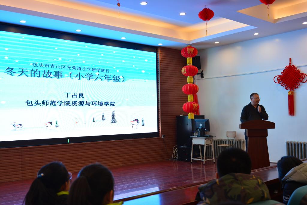 活动前期,光荣道小学校长张建华和副校长张凤民与资环学院院就相关工作进行了充分探讨和研究。活动中,丁占良老师向同学们详细介绍了包头市冬季天气现象和黄河流凌等相关知识,一起参观包头市城市规划展览馆,了解包头市自然、人文和城市建设的基本情况。随后,大家到黄河大桥观看黄河流凌景观,丁占良老师现场对流凌和凌汛形成原因进行了专业讲解。