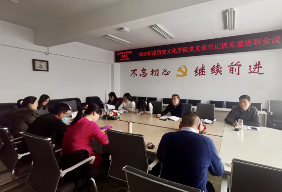 根据学校《党委组织部关于做好2019年度党组织书记抓基层党建述职评议考核工作的通知》精神, 12月20日上午,历史文化学院党总支召开了党支部书记抓党建述职会议,学院党总支书记胡琮禹主持会议,全体教师党员参加了会议。