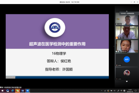 5月16日物理学专业第3小组侯红艳同学正在答辩中(线上截屏)