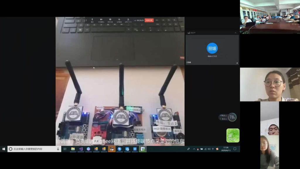 会上,郭宏升老师首先介绍了信息科学与技术学院举办首届计算机设计大赛的背景、意义和历程,召开此次会议的目的。参加自治区计算机设计大赛七个项目的负责人,在钉钉平台上进行了线上答辩。他们经过学院复赛、决赛,在此次答辩中胸有成竹。他们从市场分析、项目介绍、功能特色、创意创新、风险分析等方面进行了汇报,展示出良好的技术水平和竞赛风貌。随后,指导老师对每个项目进行了中肯的点评,提出了具体的修改意见,给出了切实可行的备赛方案。